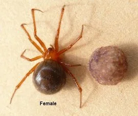 Red House Spider, Found under most cupboards,Kitchens and Bathrooms, even bedside tables and beds.This species is said to be capable of causing some local pain and accidental bitings may occur in the same manner as for the redback spider, check for any mess under cupboards and check carefully.
