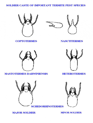 These termites can cause damage approaching the severity caused by Coptotermes. They build fragile nests in places such as old tree trumps, in timber buried in the ground, in filled patios and under fireplaces. The damage they cause is distinctive. Although it can be severe it is often patchy, with huge gouges taken out of sound timber, particularly around nails in floor boards or other timbers. Schedorhinotermes colonies contain major and minor soldiers and this can determine a size of a colony so we can manage or get an understanding on what damages may be inside a dwelling.