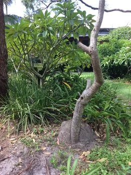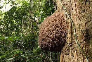 Coptotermes nest mud mound mostly under trees but can be anywhere in the ground.
